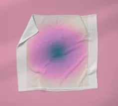 Un morbido gradiente fonde il blu e il rosa vibranti, formando forme organiche astratte e sovrapposte. Le transizioni morbide e il bagliore etereo creano una visione rilassante.