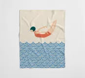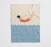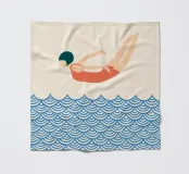 Questa immagine artistica mostra una donna stilizzata in costume da bagno rosso che si tuffa elegantemente in mare: un simbolo di libertà, leggerezza e sensazione estiva. Le forme chiare, le onde blu e i tenui colori pastello conferiscono al motivo un fascino moderno e retrò in stile metà secolo. Perfetto per gli amanti dell'arte minimalista, dell'estetica vintage e dei momenti estivi mediterranei.