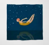 Un momento di quiete tra sogno e realtà: una donna in costume da bagno giallo galleggia senza peso sull'acqua, il suo riflesso si confonde nelle profondità notturne. Le stelle scintillano sopra di lei, il silenzio si trova sotto: un simbolo di coraggio, di lasciarsi andare e di tuffarsi nell'ignoto.