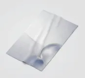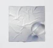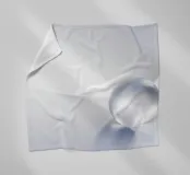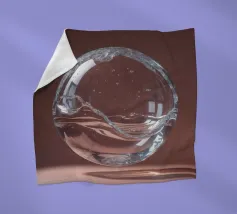 Una sfera trasparente poggia tranquillamente su una superficie bianca e pulita, catturando la luce intorno a sé. La sua forma liscia e cristallina riflette le luci soffuse e rivela le ombre sottili sottostanti, creando un senso di purezza e semplicità. La sfera sembra quasi priva di peso, come una goccia di luce congelata in uno spazio perfettamente calmo.