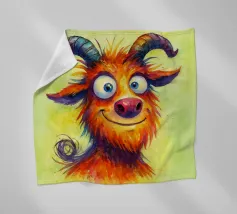 Un simpatico e soffice mostro giallo con corna colorate e grandi occhi: un motivo allegro per i bambini e gli appassionati di disegni kawaii.