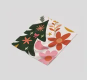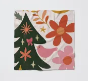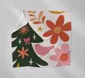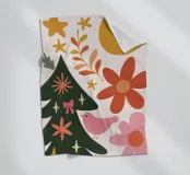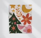Una scena natalizia tenera e stravagante con un uccellino rosa che riposa accanto a un albero festivo sotto una luna dorata e stelle scintillanti. I toni caldi del blush, del terracotta e del senape si fondono con semplici forme floreali per creare un'atmosfera accogliente e modernamente boho. Perfetto per le camerette, le stanze dei bambini o gli interni natalizi che amano il fascino minimale e l'allegria dei colori pastello.