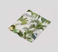 Questo incantevole disegno unisce l'eleganza vittoriana alla fantasia tropicale in una scena meravigliosamente stravagante. Graziose signore in ornati abiti d'epoca si aggirano in paesaggi lussureggianti pieni di palme e fiori esotici, interagendo giocosamente con mansueti animali selvatici. Alcune cavalcano zebre con composta dignità, altre si rilassano su divani barocchi accanto a sereni ghepardi, mentre alcune offrono dolcetti a gentili giraffe. La composizione è ricca di dettagli e deliziosamente surreale, creando un mondo vivace e pieno di affascinanti sorprese che si rivelano più a lungo si guarda.