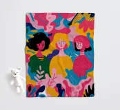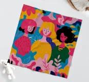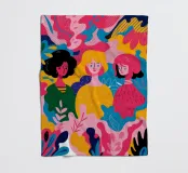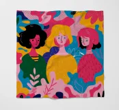 Un'illustrazione bella e potente raffigura un gruppo eterogeneo di donne, i cui volti e capelli si intrecciano con una vibrante esplosione di fiori colorati, celebrando la sorellanza, la diversitร e la crescita.