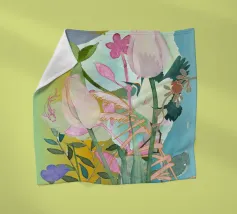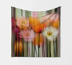 Questa vibrante arte digitale astratta combina colori brillanti e texture glitterate ispirate a motivi botanici. Le strisce orizzontali in rosa, arancione, viola e verde donano nuova energia a qualsiasi spazio abitativo e celebrano la bellezza della natura colorata.