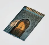 Tramonto su una facciata in Marocco. La luce del sole su una porta tradizionale in legno in Marocco. Arte, design e architettura marocchina a Meknes.