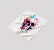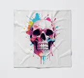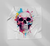Un'impressionante illustrazione di un teschio con un'esplosione di vibranti spruzzi d'inchiostro sullo sfondo. Questo design audace fonde vibrazioni gotiche e taglienti con l'energia della moderna street art. Perfetto per chi ama un'estetica oscura ma colorata.