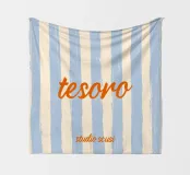 "Tesoro" significa tesoro - in italiano e in spagnolo. Questo design combina una calda tipografia con un morbido sfondo a righe e l'aggiunta ironica "studio scusi". Ideale per le anime creative, gli amanti del design e dell'estetica mediterranea.