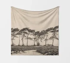 Disegno di paesaggio arboreo d'epoca rimasterizzato.