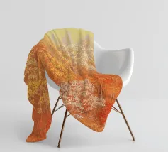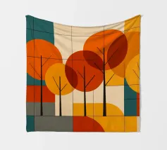 Una splendida rappresentazione astratta di una foresta autunnale con alti tronchi scuri e fogliame dorato. Lo sfondo caldo e luminoso esalta la composizione geometrica, creando un'atmosfera serena e moderna.