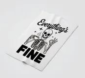 Quando tutto va male, ma si continua a sorridere (o almeno a dare l'illusione di sorridere). Questo scheletro che sorseggia il suo caffè in modalità zen, con il messaggio "Everything's Fine", è la perfetta incarnazione dell'umorismo nero e dell'ironia quotidiana. Perfetto per gli amanti del sarcasmo grafico, del caffè salvavita e dell'atteggiamento "tutto va bene", anche quando le cose sono caotiche. Un design divertente, cinico e ultra-elegante.