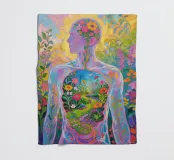 Umano trasparente con un giardino in miniatura con pittura fauvismo stile arte