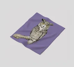 Un dipinto a olio di un gufo dall'aspetto simpatico e divertente. Si tratta di un uccello marrone chiaro con grandi occhi arancioni. Gli occhi del gufo sono un po' irregolari, il che lo fa sembrare ancora più buffo e dolce. Sembra anche un po' spaventato con i suoi occhi rotondi.