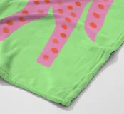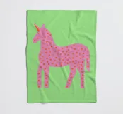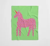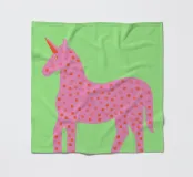 Questa giocosa illustrazione mostra un unicorno rosa con puntini su uno sfondo arancione e verde, perfetto per le camere dei bambini o per le decorazioni estive. La grafica dipinta a mano combina elementi fantasiosi con un design minimalista e crea un'atmosfera allegra che irradia gioia e creatività.