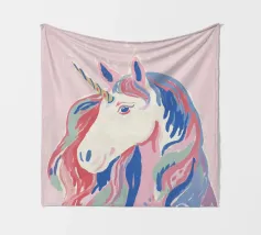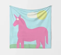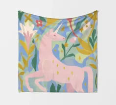 Questa giocosa illustrazione mostra un unicorno rosa con puntini su uno sfondo arancione e verde, perfetto per le camere dei bambini o per le decorazioni estive. La grafica dipinta a mano combina elementi fantasiosi con un design minimalista e crea un'atmosfera allegra che irradia gioia e creatività.
