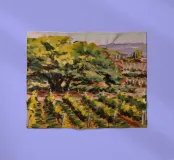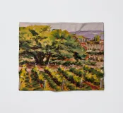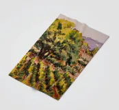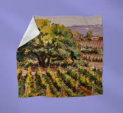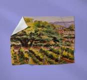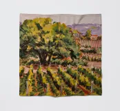 Rigogliosi e verdi filari di vite si estendono su un paesaggio inondato di sole nella classica tradizione dei vigneti europei, trasmettendo un senso di abbondanza e il ritmo pacifico della vita di campagna.