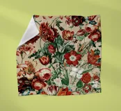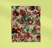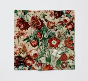 "I motivi e i disegni di Burcu Korkmazyurek si trasferiscono perfettamente dalle radici della moda alle stampe su tela. I suoi realistici motivi floreali e animali si integrano o contrastano con sfondi che vanno dal"