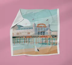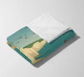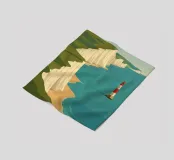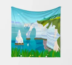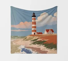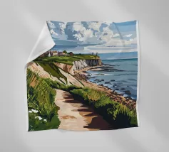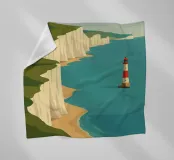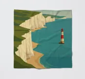 Design di viaggio minimalista dell'Inghilterra meridionale con le famose scogliere bianche (chalk cliffs) e il faro sulla costa inglese vicino a Dover. Tipico paesaggio di scogliere chiare.