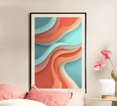 Una giocosa composizione astratta, ricca di audaci forme ispirate alla giungla e di pennellate vivaci. Questo disegno a mano combina verde acqua, blush, senape e menta in un layout gioioso e contemporaneo, perfetto per ravvivare gli interni moderni con un tocco tropicale.
