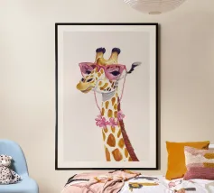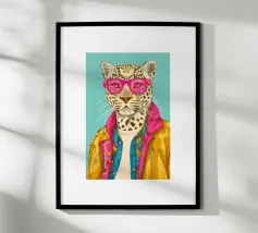 Illustrazione stilizzata di un carismatico ghepardo vestito in modo casual chic con occhiali da sole eleganti e una posa da dandy sicuro di sé. Con la sua tavolozza vibrante e il suo tocco favoloso, quest'opera d'arte celebra l'individualità, lo stile e la fiducia in se stessi. Perfetto se amate le vibrazioni della fauna tropicale con uno spirito moderno.