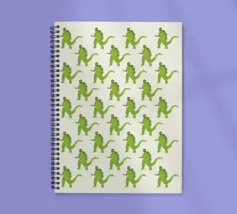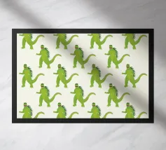 Questo disegno di Godzilla è un pezzo unico che cattura la potenza dell'iconico mostro in modo creativo. L'opera d'arte presenta un motivo ripetuto di illustrazioni stilizzate di Godzilla. L'artista (kathrinmay) ha prestato attenzione ai piccoli dettagli.