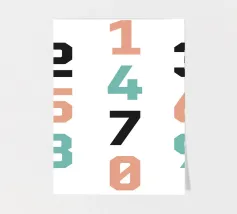 Questa opera d'arte digitale creata con numeri tipografici colorati è di grande impatto visivo. L'opera d'arte presenta numeri audaci e precisi in una tavolozza di colori vivaci, in vari stili. L'artista (kathrinmay) ha utilizzato colori diversi per creare un senso di armonia.