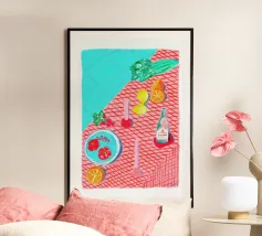 Sebbene Maria, l'artista dietro Berserk Prints, non ritragga direttamente il paesaggio costiero della Costa Brava nelle sue opere, cattura perfettamente il bagliore e la vita della sua patria mediterranea. I suoi disegni si concentrano sull'abbondanza e sulle gioie della vita: il sussurro lontano delle voci e il tintinnio delle posate durante un pasto all'aperto, la fresca brezza marina e tutti i colori della natura, come frutta, fiori e animali. Il lavoro di Maria ha una consistenza sottile ma tangibile che conferisce a ogni pezzo finito un'energia delicata ed espressiva, facendoci sognare un picnic estivo con gli amici.