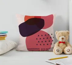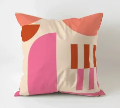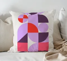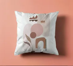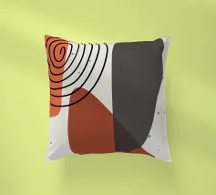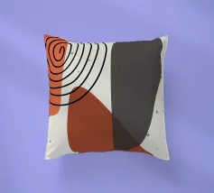Forme geometriche astratte nei toni del rosso e del marrone si sovrappongono e interagiscono tra loro, creando una composizione dinamica. Le curve morbide e le linee rette si fondono armoniosamente su uno sfondo neutro.