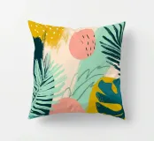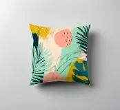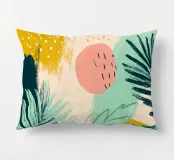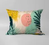 Una giocosa composizione astratta, ricca di audaci forme ispirate alla giungla e di pennellate vivaci. Questo disegno a mano combina verde acqua, blush, senape e menta in un layout gioioso e contemporaneo, perfetto per ravvivare gli interni moderni con un tocco tropicale.