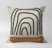 Quadro astratto moderno con forme organiche nei toni caldi del marrone e dell'arancione e linee nere. Opera d'arte minimalista con pennellate nere su sfondo beige. Per gli stili di vita e gli interni bohรฉmien, moderno, essenziale, industriale e scandinavo. Ideale per la camera dei bambini, la camera da letto, il soggiorno o l'ufficio.
