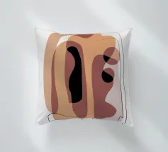 Forme astratte e pennellate decise nei toni della terra si combinano con uno sfondo chiaro. La composizione presenta rettangoli sovrapposti e schizzi a forma libera, creando un look dinamico e moderno.