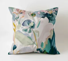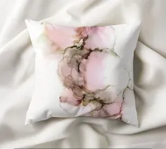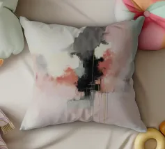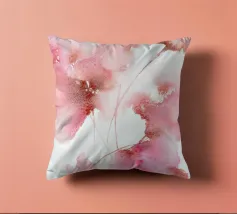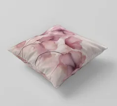 Un delicato pezzo floreale astratto con una forma centrale simile a un fiore in bianco e rosa tenue, con linee più scure simili a inchiostro che si irradiano verso l'esterno, come se svelassero l'anima di un fiore su uno sfondo tenue. Stile Melissa Herrington.