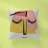 Un volto astratto minimalista con occhi chiusi, composto da semplici forme geometriche. La tavolozza di colori rosa, giallo, nero e beige crea un'espressione serena e assonnata, che incarna la tranquillità.