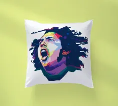 Questo ritratto di Bob Marley in stile WPAP cattura il suo look iconico utilizzando angoli audaci e colori vivaci. La sua espressione rilassata e i suoi caratteristici dreadlocks sono resi con contrasti netti, dando un senso di movimento e di vita. Lo sfondo si ispira a motivi astratti di ispirazione reggae, rendendo il disegno vibrante e fresco. Il disegno unisce perfettamente lo status leggendario di Marley con uno stile artistico contemporaneo.