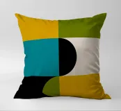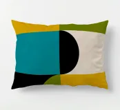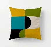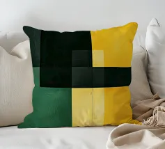 Ispirata all'estetica moderna del Bauhaus e della metà del secolo scorso, questa opera d'arte presenta audaci blocchi geometrici in giallo, verde, blu, nero e bianco sporco. Le sue linee pulite e i forti contrasti catturano l'armonia senza tempo del design modernista.