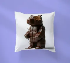 Immagine artistica di una scultura di orsacchiotto rosa rotto, con una texture che ricorda spessi strati di colore o argilla. L'orsetto appare rotto, con frammenti sparsi che evocano un senso di fragilità e nostalgia. Quest'opera d'arte minimalista e ad alto contrasto su sfondo bianco attira l'attenzione dello spettatore, combinando elementi di innocenza infantile con temi di decadenza e caducità. Ideale per gli amanti dell'arte e i collezionisti interessati alla pop art contemporanea.
