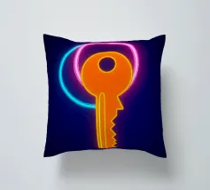 Chiave dal design cromato iridescente in un sacchetto di plastica testurizzato
