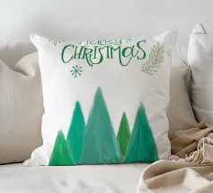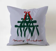 Disegno di un pino verde con neve e un fiocco rosso con citazione di Natale