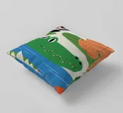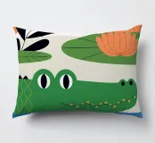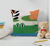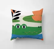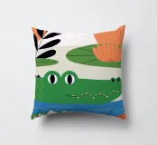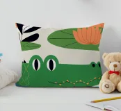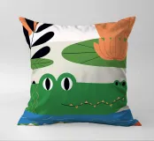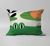 Godetevi la bellezza della natura con questa illustrazione di un coccodrillo che nuota in un bellissimo lago di loto. I colori vivaci e il design minimalista creano un'atmosfera allegra e piacevole.