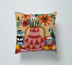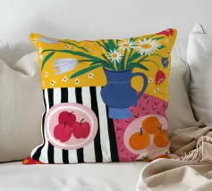 Un collage vibrante e caotico di motivi contrastanti, tra cui righe, pois e forme organiche. La gioiosa esplosione di colori e texture crea un'opera d'arte energica e piena di vita.