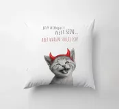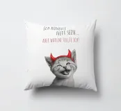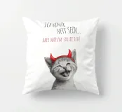 Questo gatto dice quello che tutti noi pensiamo a volte. Con il suo sorriso impertinente e le sue piccole corna rosse da diavolo, mette subito di buon umore; perfetto per chi ama l'umorismo, l'ironia e una dose di fiducia in se stesso. Il design moderno e minimalista colpisce per il suo chiaro disegno in bianco e nero e per l'accento di colore rosso; semplice, ma con un effetto wow. Il design minimalista fa sì che il gatto e lo slogan siano al centro dell'attenzione. Un must per tutti i fan dei gatti di carattere o per chi vuole mostrare il proprio lato sfrontato con stile.