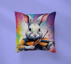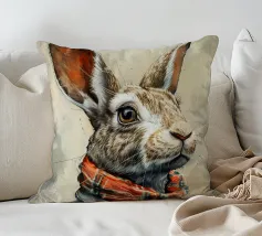 Un coniglio stravagante in plaid si muove con decisione, stringendo una lettera con urgenza surreale.