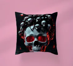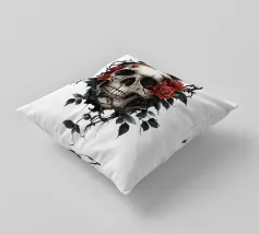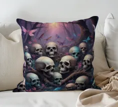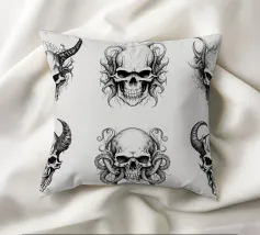 Diversi teschi sono appesi in una ragnatela di ragnatele e rami spinosi. La scena è in bianco e nero e appare oscura e misteriosa per la ricchezza dei dettagli. Un motivo a metà tra l'incubo e l'opera d'arte.