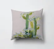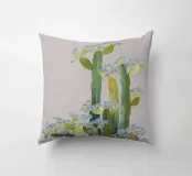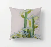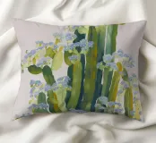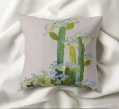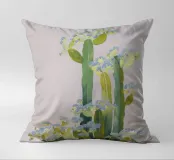 Questa delicata opera d'arte raffigura cactus verdi con fiori azzurri, dipinti in tenui colori pastello. La combinazione di toni morbidi di beige e verde conferisce al motivo un'atmosfera calda e naturale. Ispirato alla botanica del deserto, il risultato è un quadro vegetale minimalista con una leggerezza estiva.