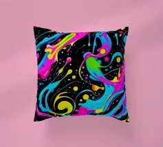 Spruzzi colorati di rosa e blu creano un energico disegno astratto su uno sfondo scuro, perfetto da usare come sfondo del desktop o decorazione artistica.