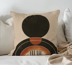 Questo design colpisce per l'armonia degli archi e per la palette di colori caldi e terrosi in marrone, nero e arancione. Le linee geometriche pulite e il sottile tocco vintage lo rendono un'attrazione senza tempo per qualsiasi casa moderna o nostalgica. Perfetto per l'arte da parete, i cuscini o gli accessori per la casa, per dare alla vostra stanza uno stile elegante e unico.