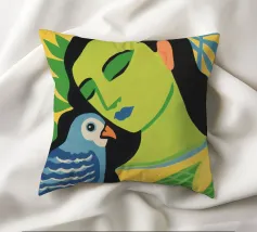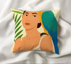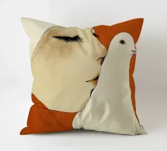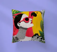 L'incontro tra l'uomo e l'uccello diventa un'allegoria poetica della fiducia e della connessione. La rappresentazione bidimensionale e stilizzata della giovane donna con il pappagallo ricorda le xilografie giapponesi e le moderne graphic novel asiatiche, mentre la combinazione di colori nei toni del rosso sfiora la schiettezza emotiva dell'Espressionismo. Il delicato bacio sulla testa del pappagallo è come un rituale: intimo, senza tempo, quasi sacro. Un'opera che non solo mostra la vicinanza, la connessione e la fiducia tra animale e uomo, ma la rende tangibile.