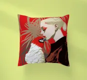 L'incontro tra l'uomo e l'uccello diventa un'allegoria poetica della fiducia e della connessione. La rappresentazione bidimensionale e stilizzata della giovane donna con il pappagallo ricorda le xilografie giapponesi e le moderne graphic novel asiatiche, mentre la combinazione di colori nei toni del rosso sfiora la schiettezza emotiva dell'Espressionismo. Il delicato bacio sulla testa del pappagallo è come un rituale: intimo, senza tempo, quasi sacro. Un'opera che non solo mostra la vicinanza, la connessione e la fiducia tra animale e uomo, ma la rende tangibile.