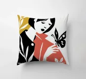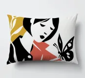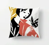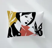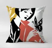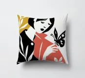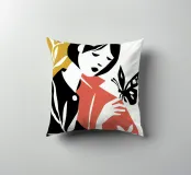 L'elegante riduzione incontra il simbolismo poetico: questa composizione minimalista mette in scena un momento di intimità tra una donna e una farfalla. I tre colori - nero profondo, terracotta calda, giallo oro radioso - ricordano i manifesti Art Déco e le silhouette giapponesi. La delicata farfalla sulla mano della donna simboleggia la trasformazione e la transitorietà. Gli occhi abbassati e la postura contemplativa emanano una calma meditativa. I fluidi elementi botanici creano un'atmosfera poetica. Chiarezza grafica e profondità emotiva si combinano per creare un'eleganza senza tempo.