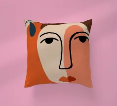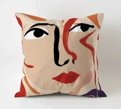 Un ritratto astratto moderno e minimalista creato con linee fluide e continue, che raffigura un volto dall'espressione dolce in una tavolozza di colori terrosi.